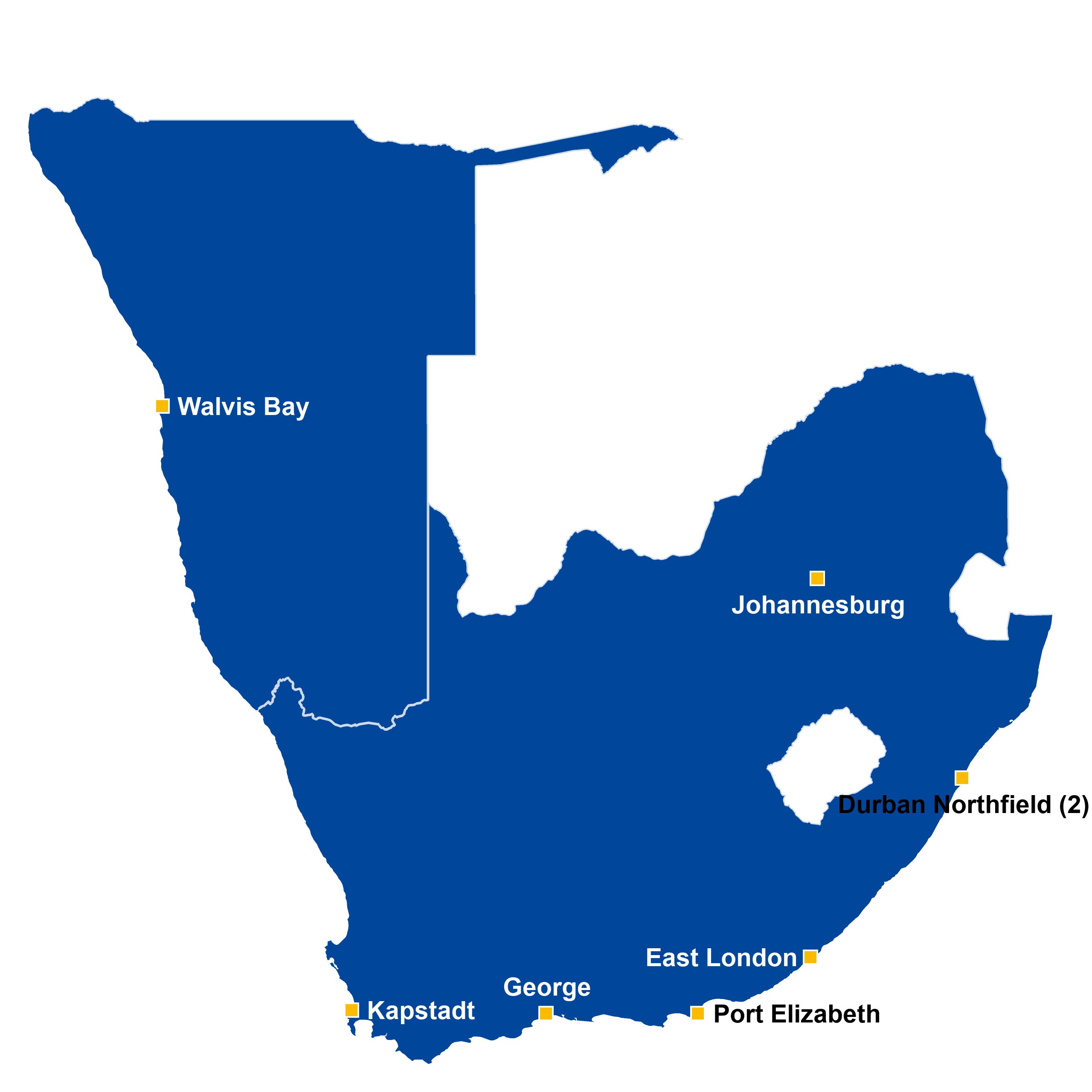 Dank ihrer strategisch günstigen Lage in allen wichtigen Zentren im südlichen Afrika sorgen unsere Lagerhäuser dafür, dass Ihre Produkte nah an Ihren Kunden sind.