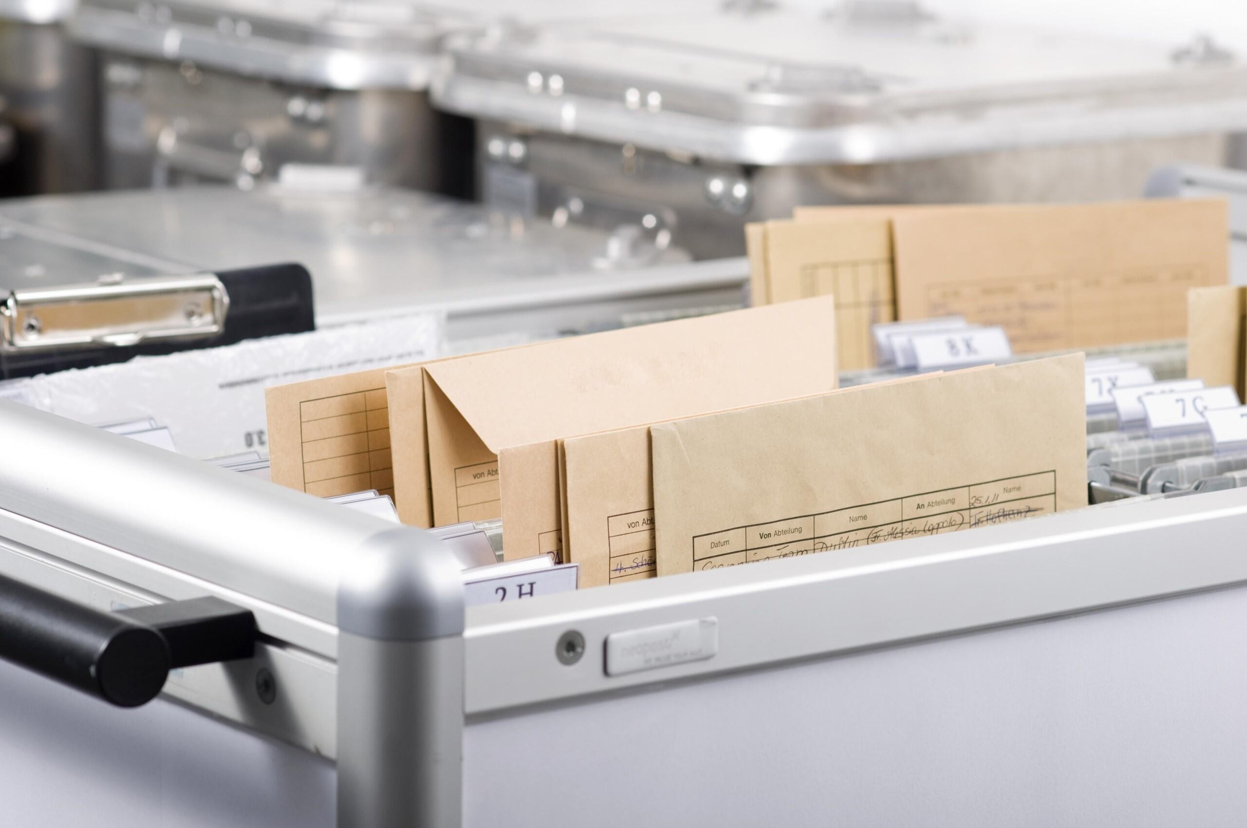 Files in an open drawer