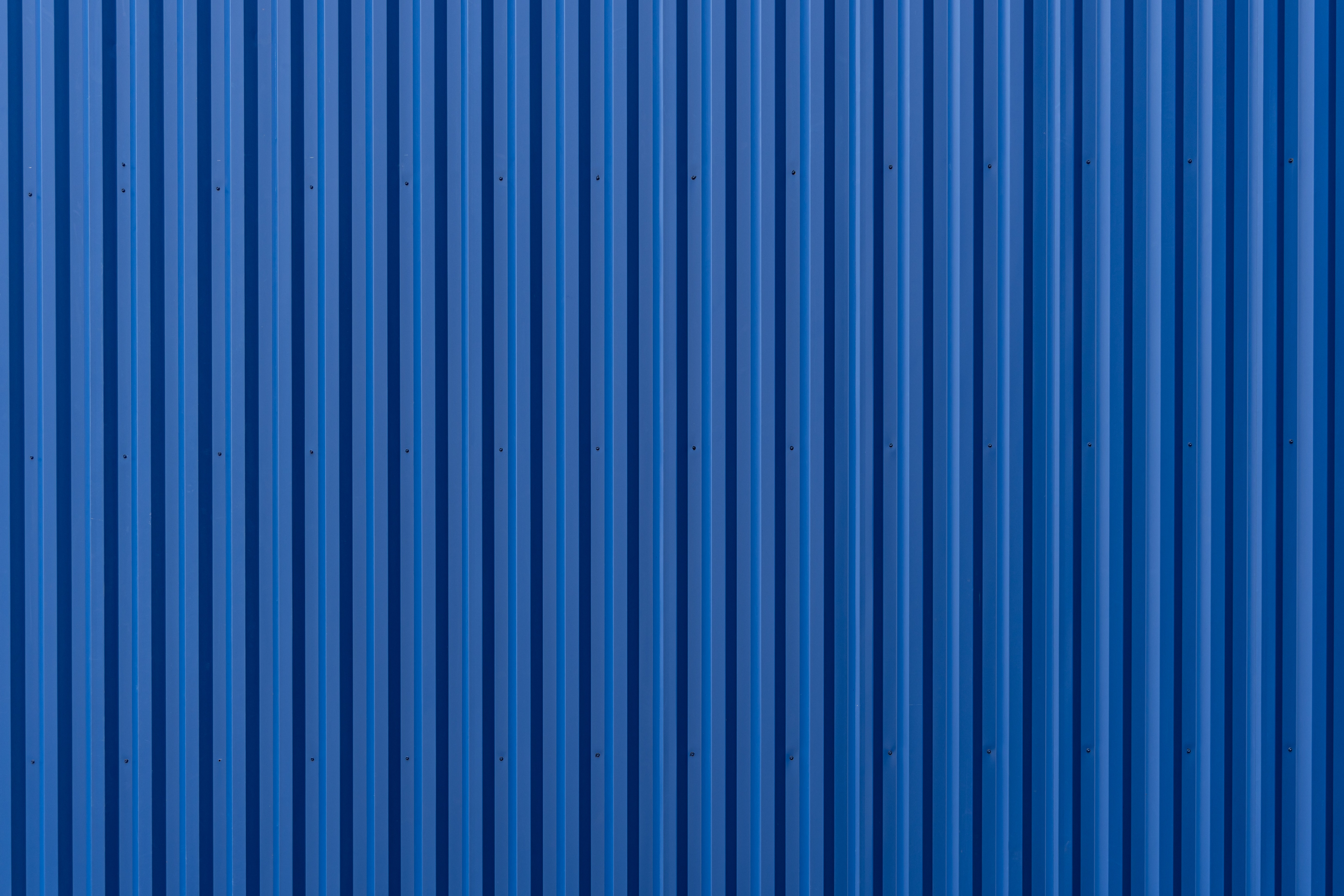 Blue corrugated metal wall with vertical ridges.