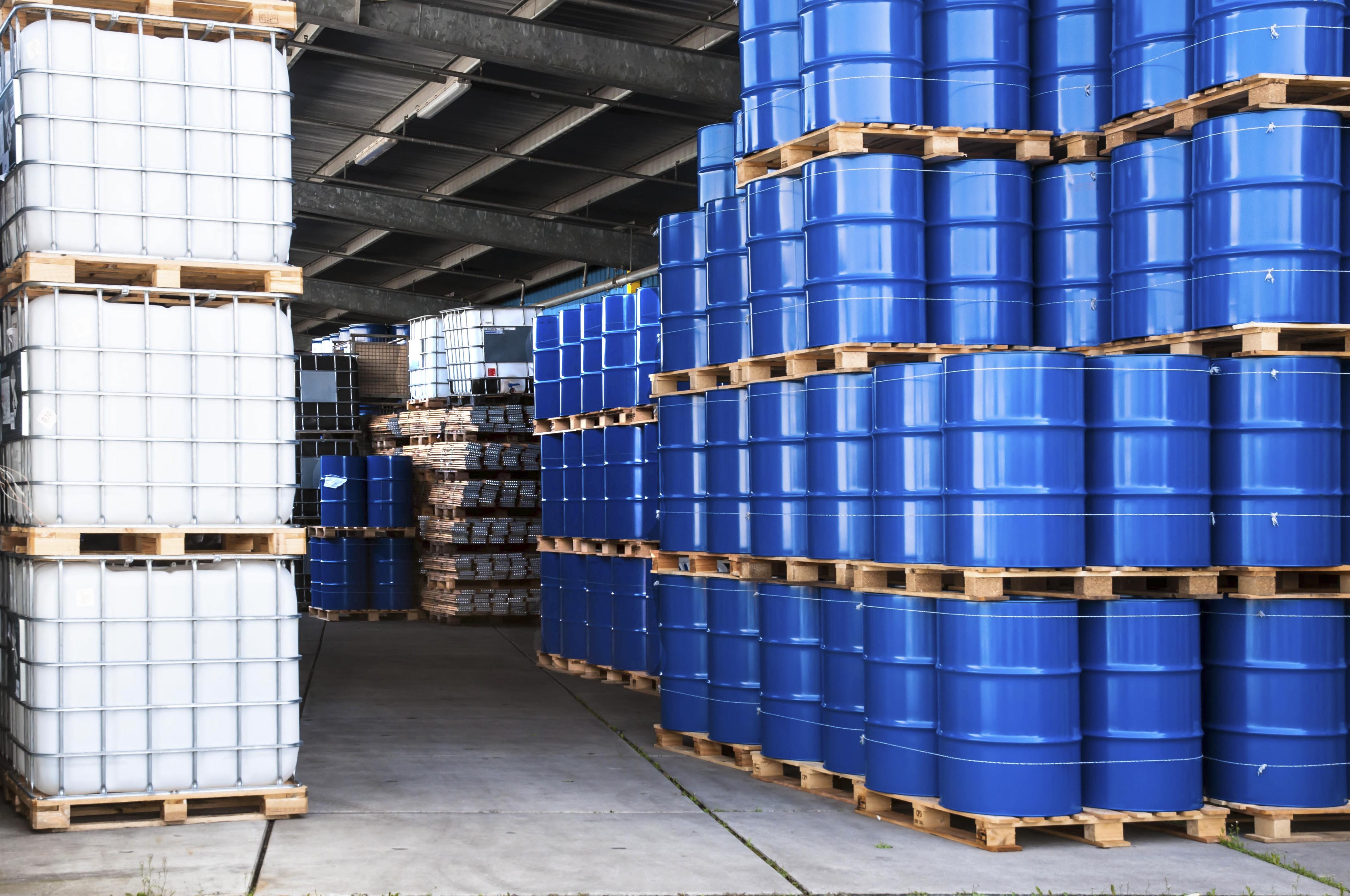 Blue drums in a container